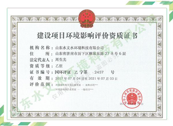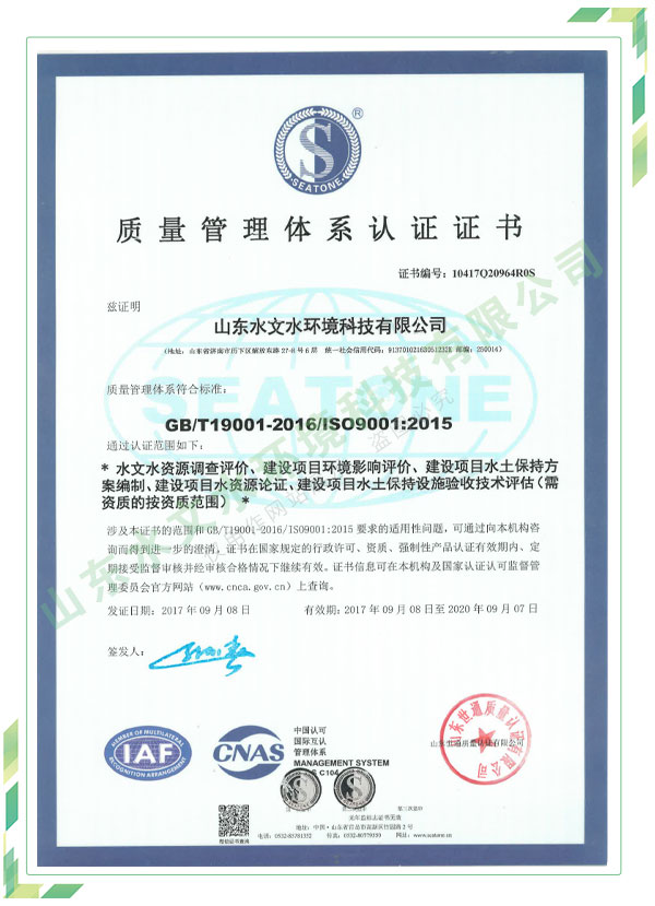 公司擁有水利工程設(shè)計(jì)、水土保持、水文水資源調(diào)查評(píng)價(jià)、水資源論證、建設(shè)項(xiàng)目環(huán)境影響評(píng)價(jià)、市政公用工程施工總承包、水利水電工程施工總承包、電子與智能化工程專業(yè)承包等資質(zhì),2017年通過質(zhì)量管理體系、環(huán)境管理體系、職業(yè)健康安全管理體系認(rèn)證;2020年被評(píng)為國(guó)家級(jí)高新技術(shù)企業(yè),同年被中國(guó)水利企業(yè)協(xié)會(huì)推薦為第一批“合同節(jié)水服務(wù)企業(yè)”;2021年被山東省、濟(jì)南市評(píng)為 “專精特新”中小企業(yè)。業(yè)務(wù)范圍涉及水利工程設(shè)計(jì);節(jié)水設(shè)計(jì)、改造、水平衡測(cè)試;山洪災(zāi)害調(diào)查;城市水資源調(diào)查評(píng)價(jià);建設(shè)項(xiàng)目水土保持方案編制、監(jiān)測(cè)、驗(yàn)收、水土保持規(guī)劃;水安全保障規(guī)劃、建設(shè)項(xiàng)目水資源論證、規(guī)劃水資源論證;建設(shè)項(xiàng)目環(huán)境影響評(píng)價(jià);入河排污口論證;防洪影響評(píng)價(jià);市政公用工程施工、水利水電工程施工、電子與智能化工程施工等。
